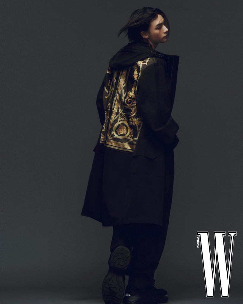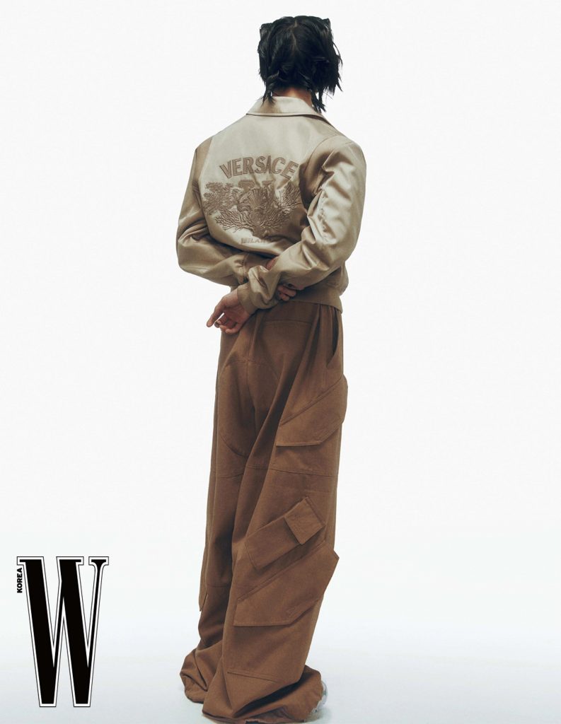 He also appeared on the cover of Harper’s Bazaar Korea that December and in a 16-page spread for SuperELLE Korea, styled head to toe in classic Versace codes. Every image held the balance Versace is known for: rich pattern, bold hardware, clean silhouettes. But it all felt filtered through someone who actually knows how to move in them.